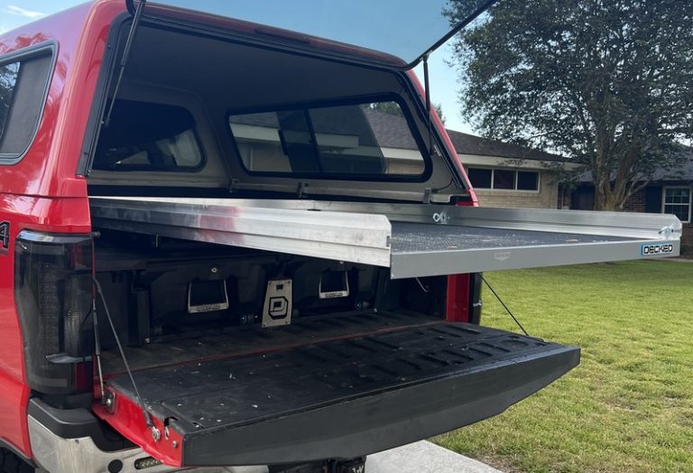 Decked: Durable, composite drawer systems ideal for contractors, trades workers, frequent campers, and others who work from their pickups. With lockable drawers, a 2,000-pound weight capacity, and built-in tie-downs, the Decked bed system is one of the leading bed slides on the market.